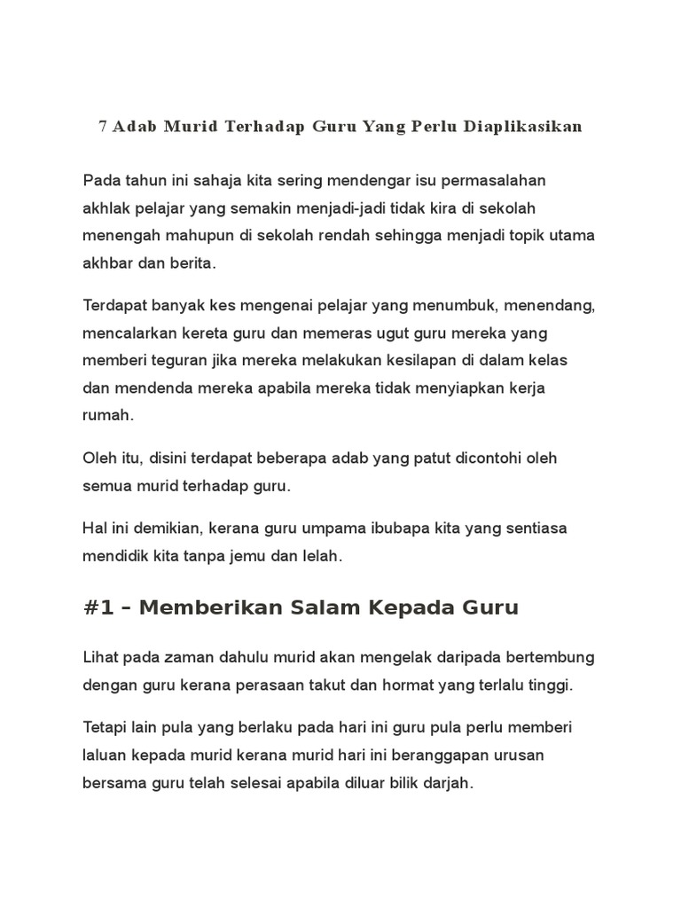 Karangan Contoh Bhg A Adab Murid Kepada Guru
